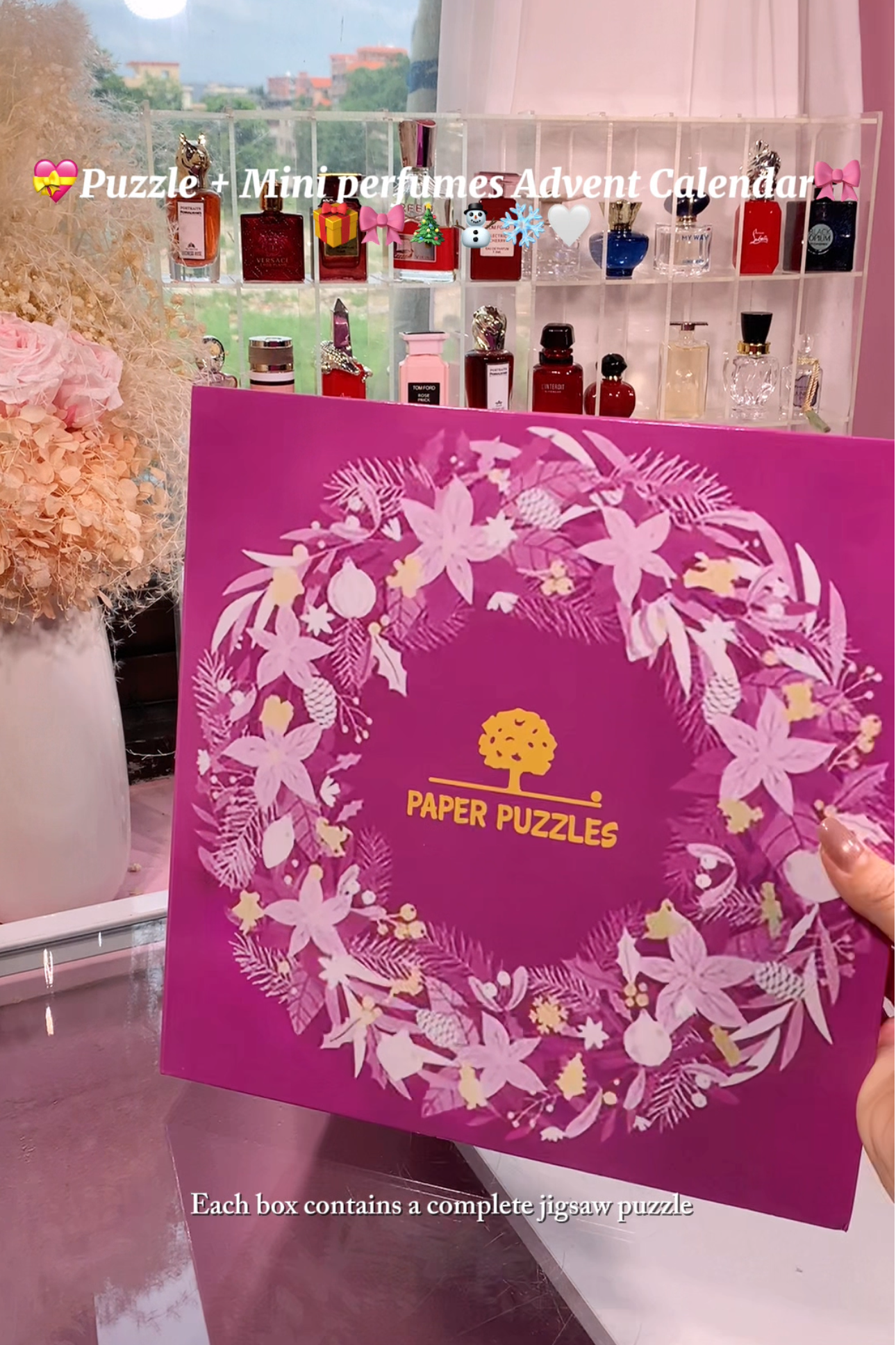 Each puzzle gift set contains a jigsaw puzzle and 24 miniature perfume bottles, with the perfumes randomly included.
